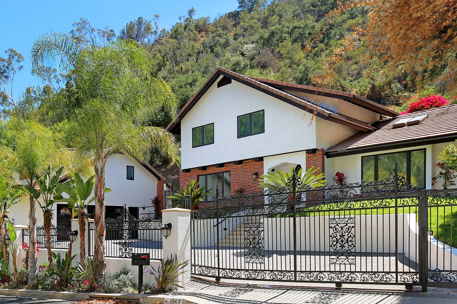 PLEASE DO NOT DISTURB COOPERATIVE TENANTS! STUNNING RECENTLY REDONE 2STY GATED CONTEMPORARY ESTATE WITH FULL-SIZE TENNIS COURT! SUNLIT ROOMS FEATURING VAULTED CEILINGS, GLEAMING WOOD FLOORS, FRENCH DOORS, BUILT-INS, SKYLIGHTS. 3 BEDROOMS UPSTAIRS + SEPARATE ATTACHED 2 STY GUEST UNIT (KITCHENETTE, BD/DEN, BA) OF OVER 600 SQ FT. GORGEOUS NEW KITCHEN/FAMILY ROOM COMBINATION. LOVELY DEN/OFFICE. BIG MASTER SUITE WITH WALK-IN/LUXE BA/BALCONY OVERLOOKING EXTRAORDINARY GROUNDS. WONDERFUL REAR GROUNDS WITH PATIOS/LAWN/POOL/SPA/UPPER-LEVEL TENNIS COURT. GATED CIRCULAR DRIVE & GARAGE FOR PARKING GALORE! A SPECIAL LONG-TERM RENTAL IN A BUCOLIC SETTING ON ONE OF LOWER BEL AIR'S MOST COVETED ROADS.